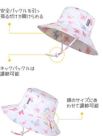 *サイズ:S(0~9カ月、頭囲17.5インチまで)、M(9カ月~4歳、頭囲19.5インチまで)、L(3~12歳、頭囲22インチまで)