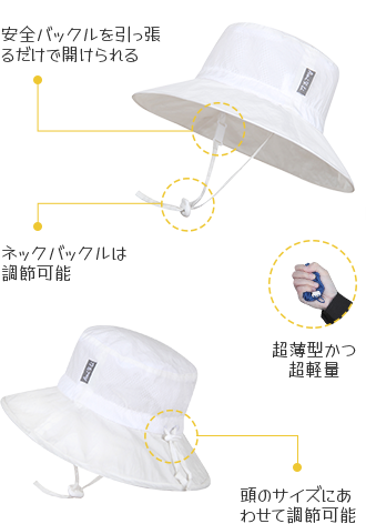 *サイズ:S(0~9カ月、頭囲17.5インチまで)、M(9カ月~4歳、頭囲19.5インチまで)、L(3~12歳、頭囲22インチまで)