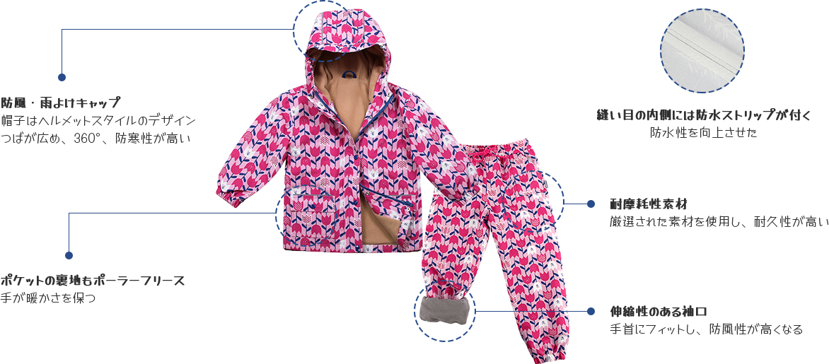 *裏地-ポーラーフリース生地、保温性に優れ、汗をかきません。