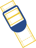 調節可能な面ファスナーのラップと手首にゴムが付き、簡単に着脱。