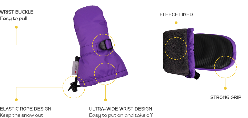 *Details - Adjustable hook and loop wrap and elastic under wrist for easy-on wear, 3M Thinsulate, Waterproof material. Little clip links left glove and right glove together, not easy to lose the gloves for children.
