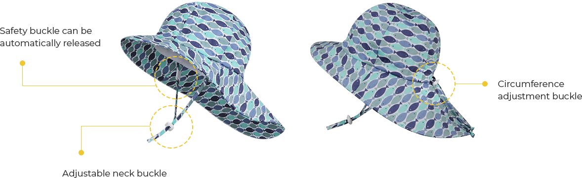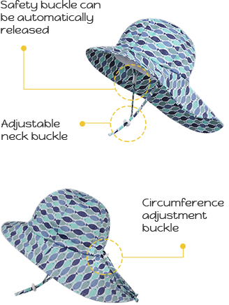 *Adjustable chin strap for well-fitting. Safety buckle based strap for security. Wider brim and better sun protection, especially neck back.